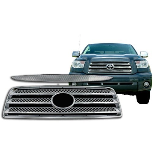 This grille is for a 2007-2009 Toyota Tundra. This chrome grille insert is made of the high impact ABS and triple chrome plated for a brilliant mirror finish. This is the only Tundra Grille that will match your factory chrome surrounding bezel. This Tundra chrome grille fits over your existing 2007-2009 Toyota Tundra's Factory Grille. Your new Tunrda Grille will install securely with retention clips already attached to the grille, ready for installation! Your new 2007-2009 Tundra Two-Piece Grille will literally install within 8 Minutes of your time. NO TOOLS ARE NEEDED. Once installed, your new grille will be secure. Get the look and Appearance of a true factory Chrome Tundra Grille that is not offered by Toyota!2007-2009 07 08 09 Toyota Tundra Chrome Grille Specifications